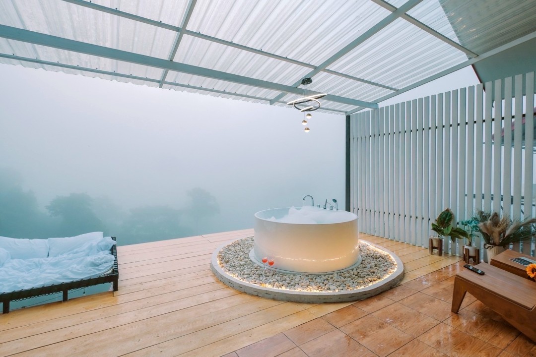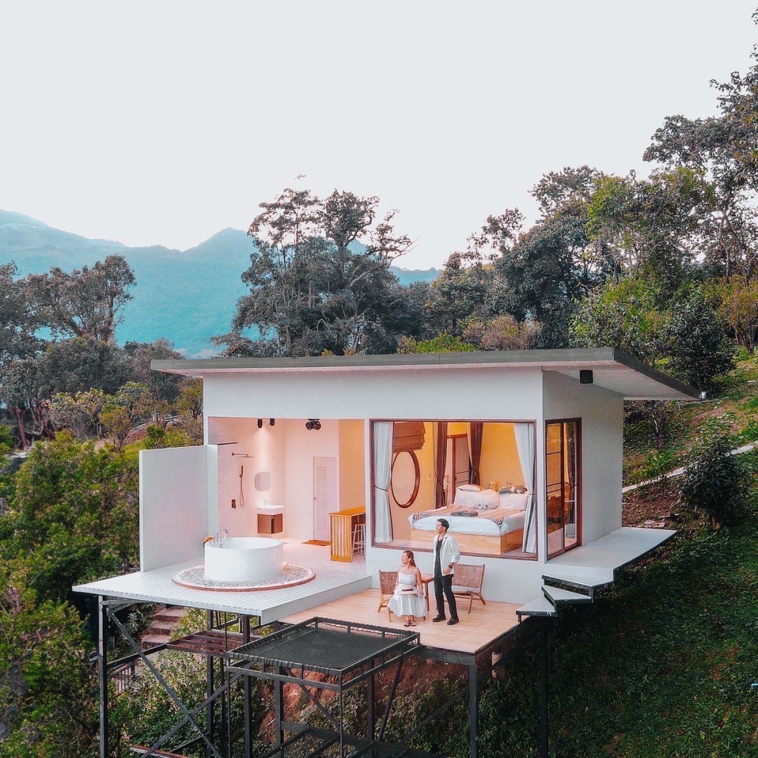 จุดเด่น: ที่พักวิวภูเขา ตั้งอยู่ในไร้ส้ม ให้บรรยากาศสดชื่นและร่มรื่น ไร่ส้มแบงค์ดอย เป็นที่พักที่มีวิวทิวทัศน์ที่สวยงามรายล้อมด้วยขุนเขา และวิวทะเลหมอก มีอ่างสำหรับแช่น้ำ ชมหมอกหน้าห้องพัก บรรยากาศดีตลอดทั้งวัน โดยเฉพาะในช่วงฤดูฝน ฤดูหนาว หรือช่วงที่อากาศเย็นสบาย ที่พักมีหลากหลายรูปแบบ ทั้งแบบบ้านพักส่วนตัวสไตล์มินิมอลโทนสีขาว มากับพร้อมอ่างจากุชชี่ระบบน้ำวนให้แช่ฟิน ๆ หรือจะเป็นบ้านสไตล์โมเดิร์นแนวลอฟท์ และยังมีเต็นท์โดมสุดหรู ซึ่งมักจะตกแต่งในโทนสีขาวมินิมอล ห้องพักที่มีอ่างสามารถแช่ตัวพร้อมกับชมวิวหมอกได้อย่างเต็มที่ นอกจากนี้ภายในห้องพักยังมีสิ่งอำนวยความสะดวกครบครัน และมีกระจกบานใหญ่ปลายเตียง เพื่อให้สามารถชมวิวจากภายในห้องได้เลย นอกจากการพักผ่อนชมวิวแล้ว มีบริการอาหารเย็น เช่น เมนูอาหารตามสั่ง เซตชาบู เซตหมูกระทะ เซตขันโตก เมนูเครื่องดื่มในคาเฟ่ รวมถึงอาหารเช้า และชุดกาแฟดริปสำหรับยามเช้า