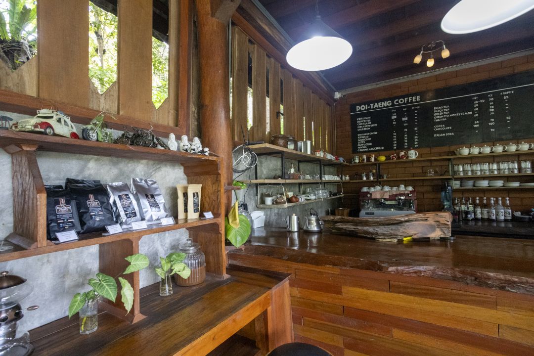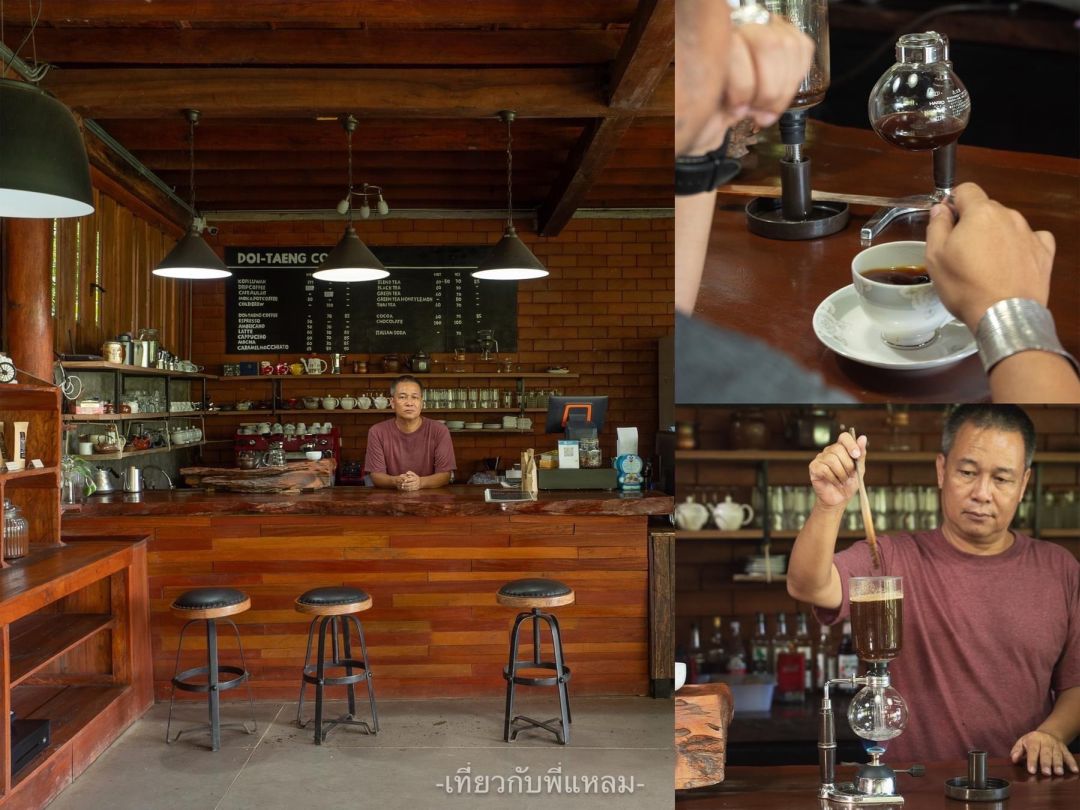 Doi Taeng Coffee Shop is located in Muang Kai Subdistrict, Mae Taeng District, Chiang Mai Province. It is a café that uses Arabica coffee beans from Doi Mae Taeng, grown at between 900–1,200 meters above sea level. It is an ideal place for those who enjoy rich and unique flavored coffee.
