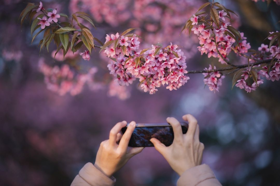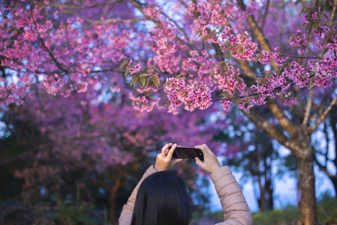 Wild Himalayan Cherry (Prunus cerasoides) or Sakura of Thailand bloom in January.