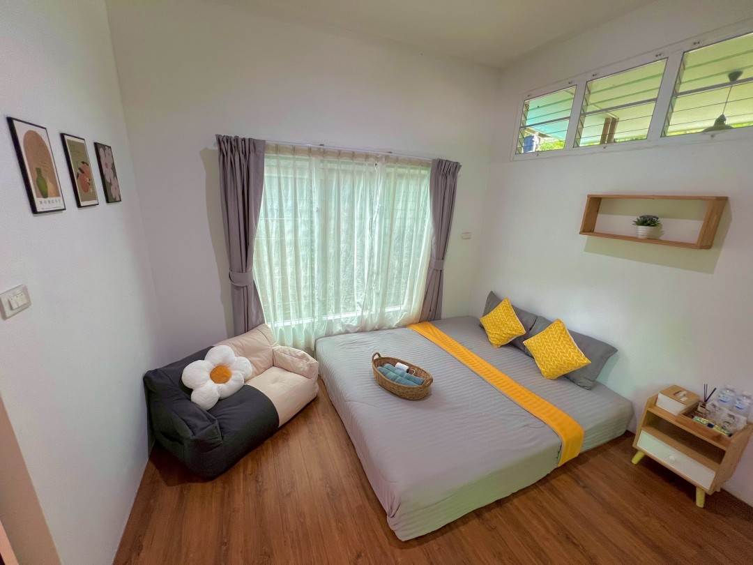 บ้านหลังใหญ่ 2 ชั้นมีห้องพัก 4 ห้องนอนแยกโซนเป็นห้องนอนชั้นบน 2 ห้องมีห้องน้ำในตัวสามารถเห็นวิวลำธาร ชั้นล่าง 2 ห้อง มีห้องน้ำ 4 ห้องอยู่ด้านล่าง ตัวอาคารเป็นห้องน้ำรวม แต่มีสิ่งอำนวยความสะดวกครบครัน ไม่ว่าจะเป็นเครื่องทำน้ำอุ่น ชุดเรนชาวเวอร์ ชักโครกใหญ่ นั่งสบาย โดยเฉพาะคนที่ตัวใหญ่ วิวหน้าห้องพักเป็นวิวลำธาร ชั้นบนมีระเบียงกว้างขวางมากค่ะ