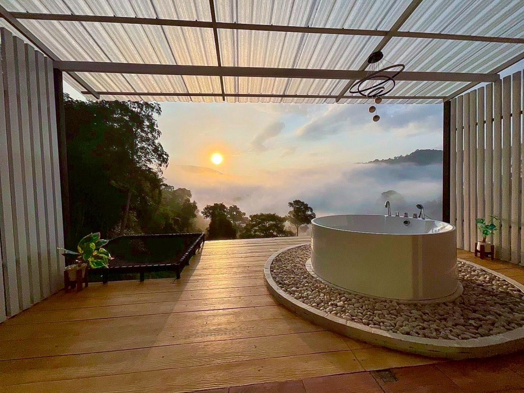 จุดเด่น: ที่พักวิวภูเขา ตั้งอยู่ในไร้ส้ม ให้บรรยากาศสดชื่นและร่มรื่น ไร่ส้มแบงค์ดอย เป็นที่พักที่มีวิวทิวทัศน์ที่สวยงามรายล้อมด้วยขุนเขา และวิวทะเลหมอก มีอ่างสำหรับแช่น้ำ ชมหมอกหน้าห้องพัก บรรยากาศดีตลอดทั้งวัน โดยเฉพาะในช่วงฤดูฝน ฤดูหนาว หรือช่วงที่อากาศเย็นสบาย ที่พักมีหลากหลายรูปแบบ ทั้งแบบบ้านพักส่วนตัวสไตล์มินิมอลโทนสีขาว มากับพร้อมอ่างจากุชชี่ระบบน้ำวนให้แช่ฟิน ๆ หรือจะเป็นบ้านสไตล์โมเดิร์นแนวลอฟท์ และยังมีเต็นท์โดมสุดหรู ซึ่งมักจะตกแต่งในโทนสีขาวมินิมอล ห้องพักที่มีอ่างสามารถแช่ตัวพร้อมกับชมวิวหมอกได้อย่างเต็มที่ นอกจากนี้ภายในห้องพักยังมีสิ่งอำนวยความสะดวกครบครัน และมีกระจกบานใหญ่ปลายเตียง เพื่อให้สามารถชมวิวจากภายในห้องได้เลย นอกจากการพักผ่อนชมวิวแล้ว มีบริการอาหารเย็น เช่น เมนูอาหารตามสั่ง เซตชาบู เซตหมูกระทะ เซตขันโตก เมนูเครื่องดื่มในคาเฟ่ รวมถึงอาหารเช้า และชุดกาแฟดริปสำหรับยามเช้า