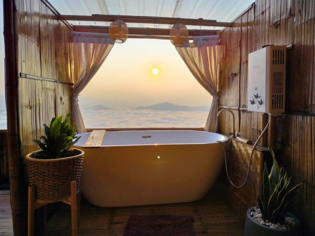 Spacious rooms with hot water showers, outdoor bath tub, hammock and live music.