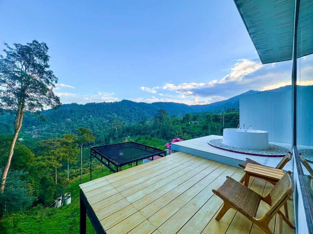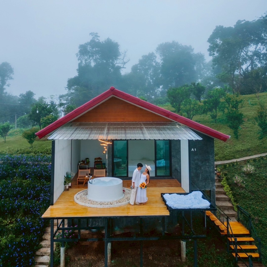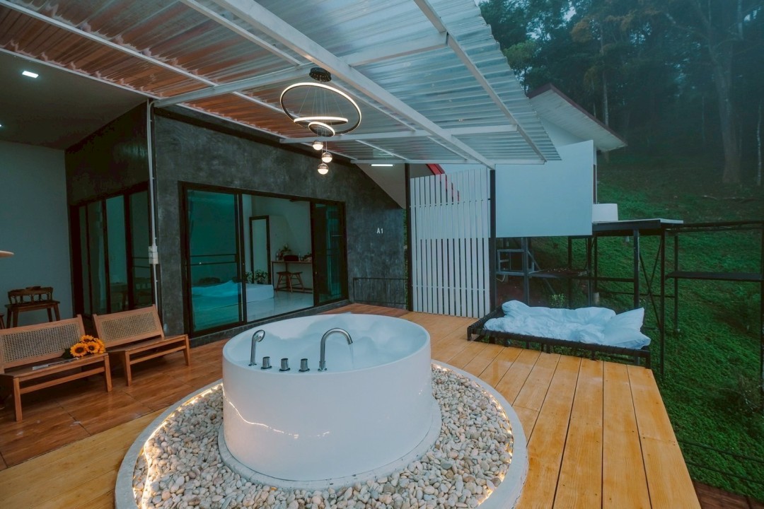 民宿风格多样,有白色简约风的独栋小屋,屋内配有按摩浴缸和漩涡系统,可尽情享受;还有现代阁楼风格的别墅和豪华的圆顶帐篷,通常都采用白色简约风装饰。带浴缸的客房让您在泡澡的同时,尽情欣赏云海。此外,房内设施齐全,床尾的大窗户让您足不出户也能饱览美景。